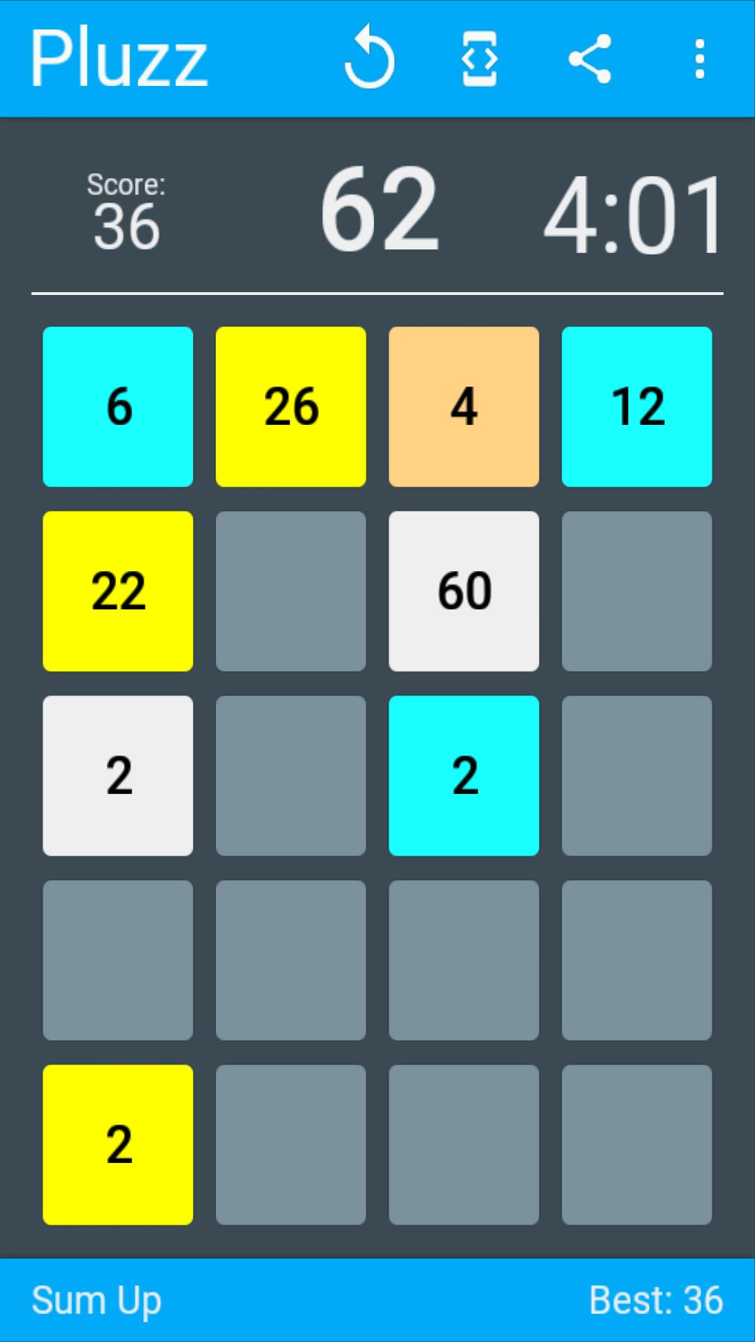 В режиме SUMUP правильные плитки должны быть подключены к правильным числам. Проведите влево, вправо, вверх или вниз, чтобы переместить плитки над игровым полем.
