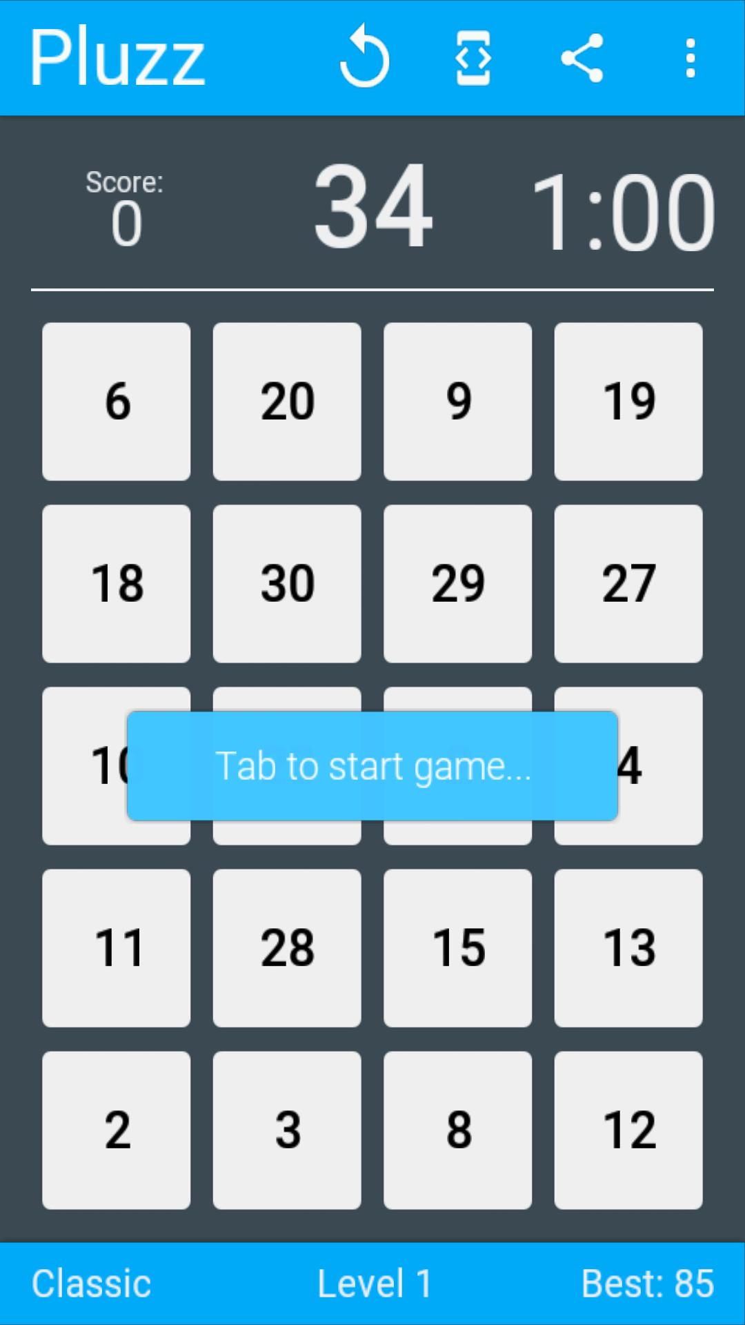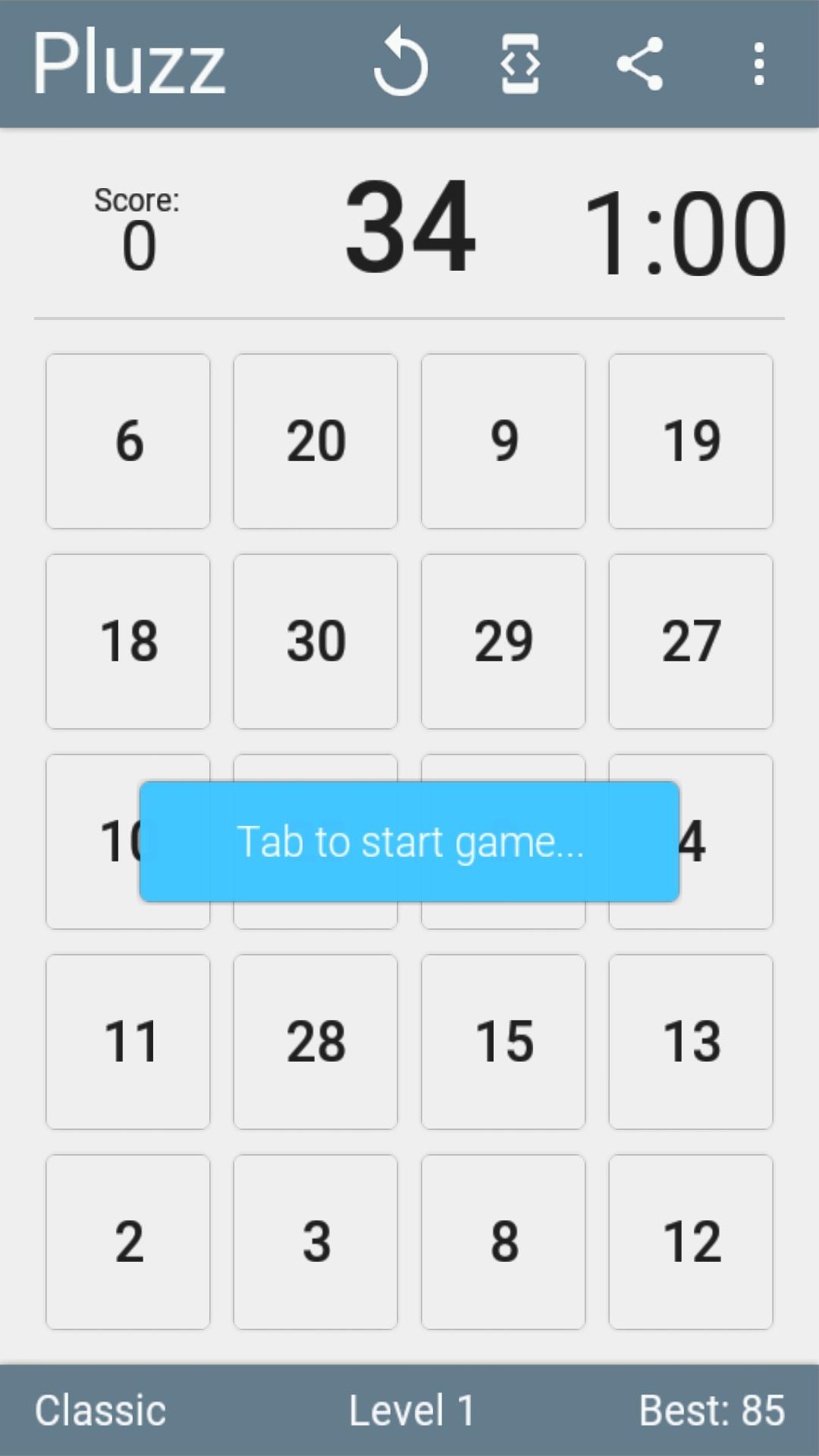 В каждом раунде может быть создана плитка с определенным числом (например, 40). Как только плитка была создана с этим номером, время сбросится до 5 минут, а следующая плитка со следующим номером должна быть создана. Число, с помощью которого должна быть создана следующая плитка, находится на вершине в центре игры. Когда плитка создается с слишком большим числом, она исчезнет.
